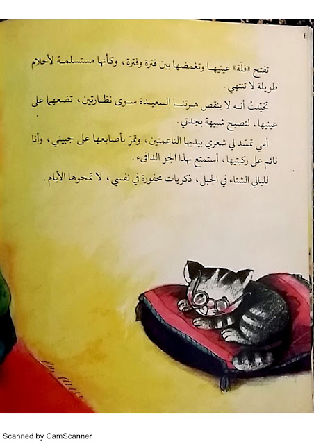 قصة بعنوان " أغانى المطر " قصة للأطفال كنت في العاشرة من عمرى , ولا شئ يستطيع أن يمحو من خيالى ذاك المشهد : ابس مستسلم لتأملاته التى لا تنتهى , وصمته العميق , جدتى يغلبها النعاس فتكبو في جلستها , فتسقط نظارتها عن عينيها . نضحك لحركة الجدة فتتنبه فتسوي من وضع نظارتها لتعود إلى نعاسها اللذيذ . الهرة تدمدم وهى راقدة إلى جانب النار فتختلط أنفاسها بأنفاس الجدة